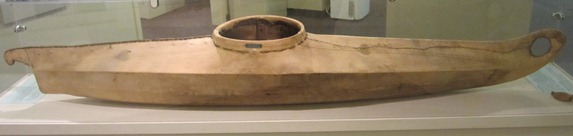 This model of a kayak was made by the Yup’ik people in the Kuskokwim River Valley of Alaska. It was collected by Moravian missionaries who worked in the area beginning in the late 1880s. The kayak model is made of seal hide stretched over a wooden framework. Traditionally, a kayak was a Yup’ik hunter’s most prized possession and a symbol of manhood. To help identify individual kayaks, men often added unique painted designs or modified the bow or stern shape of the boat. The Yup’ik used kayaks for seal hunting, fishing, and general transportation. This kayak model was featured in the exhibit The Yup’ik Way of Life: An Alaskan People in Transition.